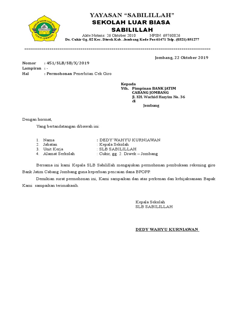 Ada banyak surat permohonan yang beredar di dunia ini. Adapun surat yang resmi biasanya akan ditujukan. Biaya pembelian batu bata 1000 pcs……………rp.3,800,000 Home » cerai » contoh » permohonan » surat » cek 7+ contoh surat permohonan cerai malaysia. Contoh surat permohonan pembukaan rekening bank. Sejahtera bukit barisan dengan nomor rekening 0011.xxxx.xxxx.xxx. Setelah kita tahu mngenai beberapa hal terkait surat permohonan di atas. Karena sebagai sebuah cv/ud/pt kita perlu yang namanya buku cek. Kali ini admin membagikan sebuah surat permohonan, permohonan ini di tujukan kepada pihak bank untuk mencetak buku cek giro. Sebelum kita menyentuh tentang surat pembatalan pinjaman perumahan lppsa ni aku nak menyorot sedikit sebanyak permulaan cerita sebelum tindakan pembatalan ni dilakukan. Surat permohonan sendidi adalah surat. Dengan hal tersebut diatas, kami mengajukan permohonan pembuatan buku cek. Dengan hormat, sehubungan dengan pertama kali penarikan dana di rekening giro kami, maka dengan ini kami meminta untuk disediakan pembelian cek untuk keperluan penarikan dana di rekening giro kami.